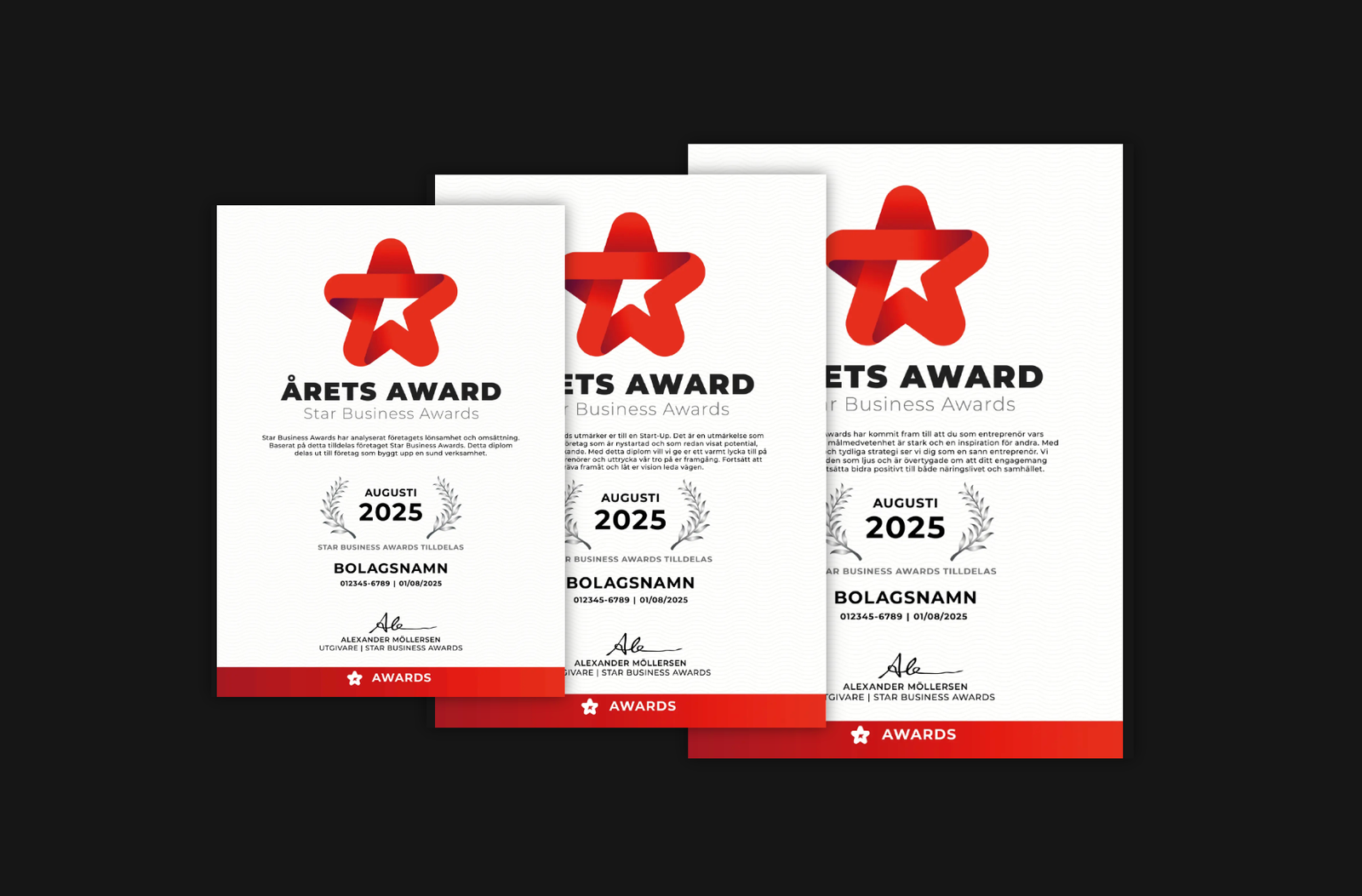 Creation of a unique and personalized website for Star Business Awards, a Swedish company rewarding outstanding businesses across various industries.